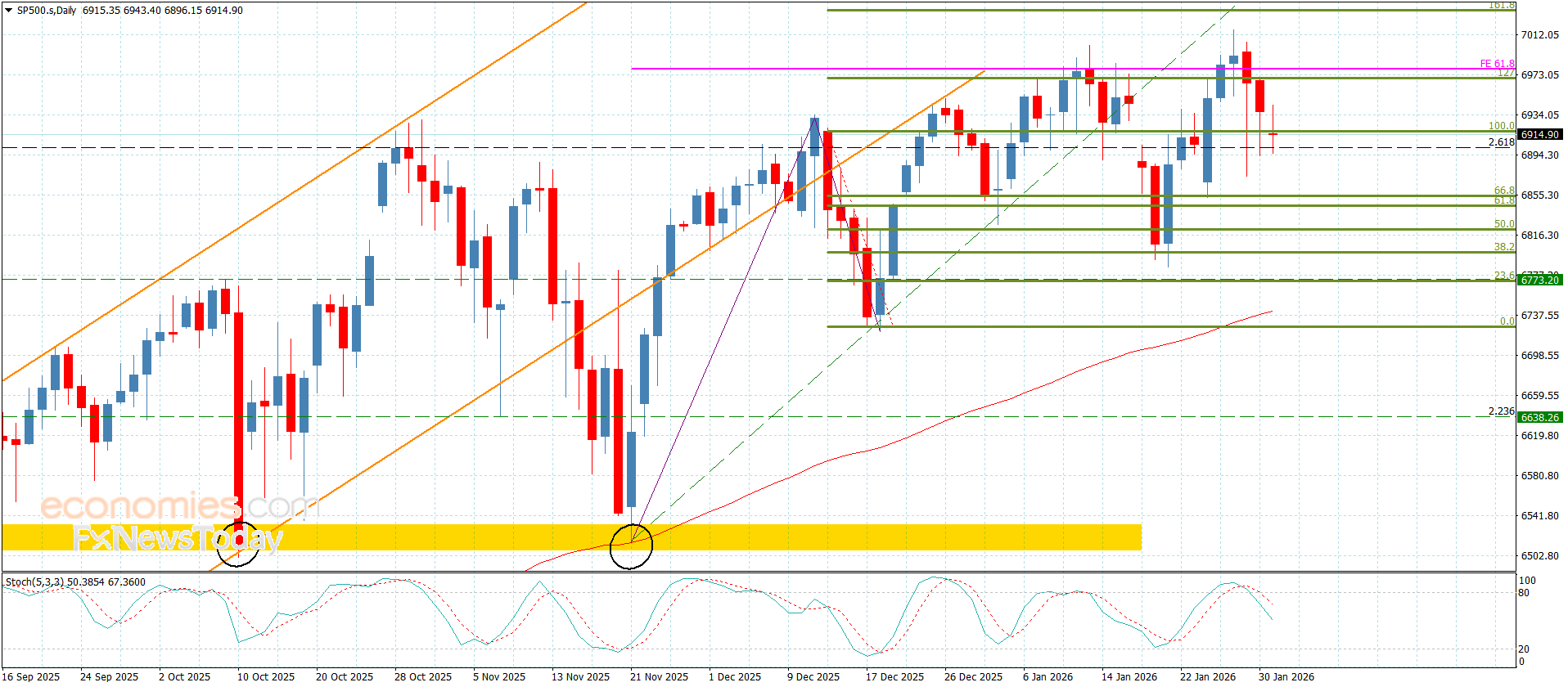 سعر مؤشر ستاندرد آند بورز يضطر للهبوط-توقعات اليوم 2-2-2026