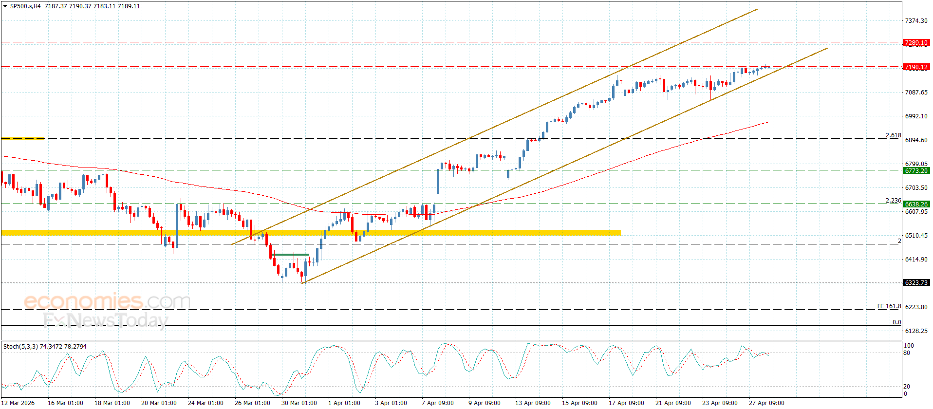 لامس سعر المؤشر بتداولات يوم أمس مستوى 7201.00 ليسجل بذلك الهدف الرئيسي الأول ومن ثم لنلاحظ تشكيله لتداولات جانبية نتيجة لخروج مؤشر ستوكاستيك من مستوى تشبع الشراء.