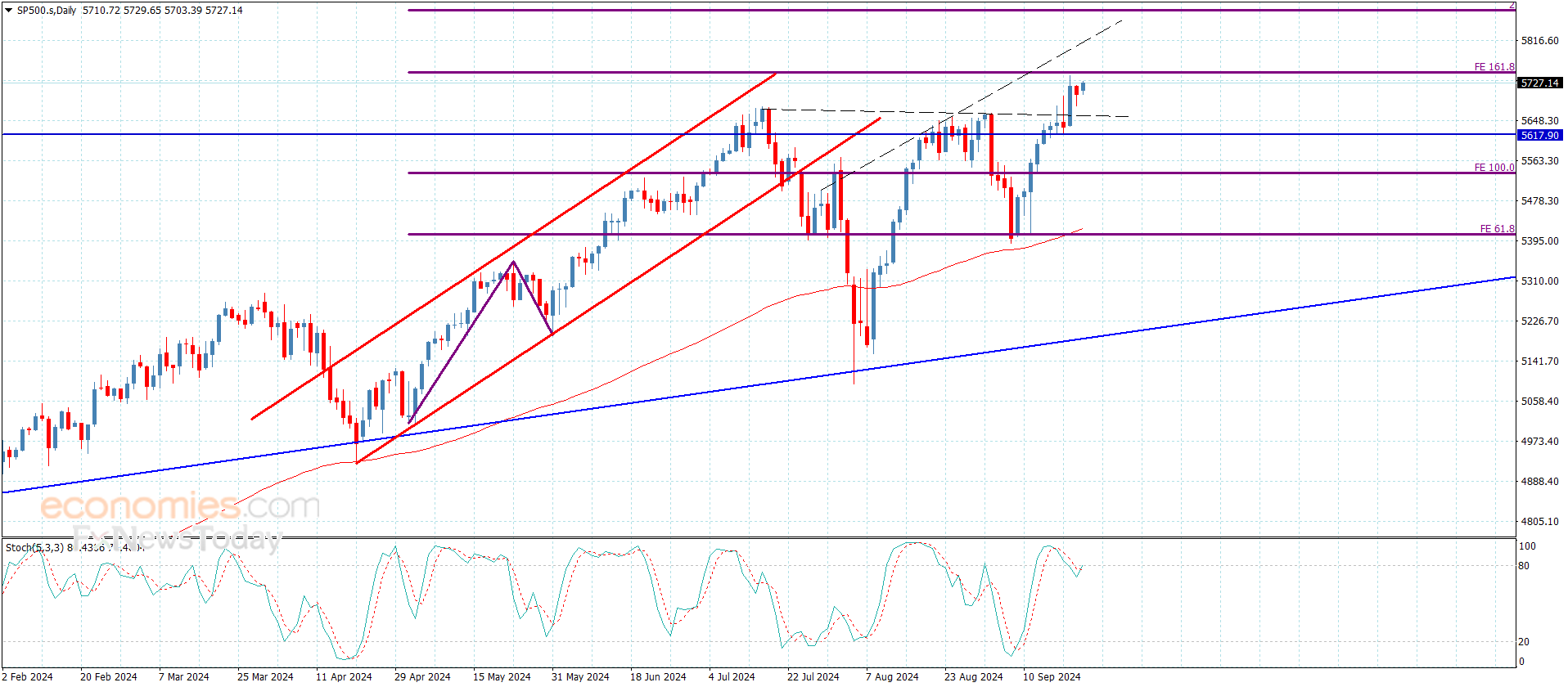 لا يزال سعر المؤشر متمسكا بالمسار الصاعد مستغلا تشكيل مستوى 5660.00 للدعم الإضافي واستمرار تقديم المؤشرات الرئيسية للعزم الإيجابي لنلاحظ تذبذبه حاليا قرب القمة التاريخية الجديدة والمتمثلة بمستوى 5742.00.