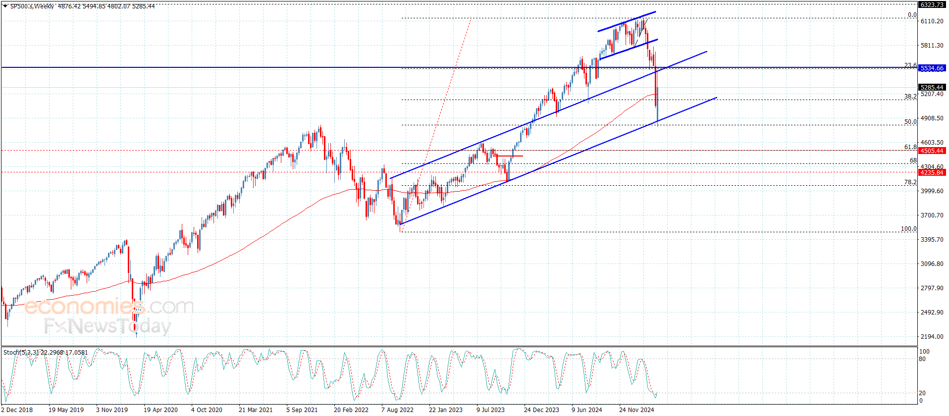 محاولة تقديم مؤشر ستوكاستيك للعزم الإيجابي بخروجه من مستوى تشبع البيع يدعونا لترجيح التداولات الصاعدة لنتوقع انجذاب التداولات قريبا نحو 5390.00 ومن ثم ليحاول الضغط على الحاجز المذكور سابقا بهدف إيجاد منفذ لاستئناف تحقيقه لمكاسب إضافية، (يبقى الترجيح الصاعد قائم ما لم يطرأ أي قرارات جديدة تتعلق بتحديث السياسة الأمريكية للرسوم الجمركية الجديدة.)