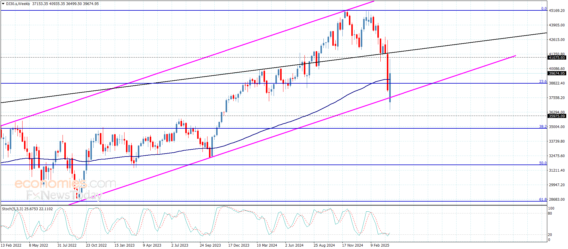 نلاحظ ثبات التداولات حاليا فوق محور المتوسط المتحرك 55 ليزيد ذلك من فرص تجميعه للعزم الإيجابي والمطلوب لتشكيل موجات صاعدة جديدة لنتوقع تشكيل مستوى 40450 للهدف الإيجابي الأول ومن ثم ليحاول السعر الضغط على الحاجز المستقر عند 41080. (يبقى الترجيح الصاعد قائم ما لم يطرأ أي قرارات جديدة تتعلق بتحديث السياسة الأمريكية للرسوم الجمركية الجديدة.)