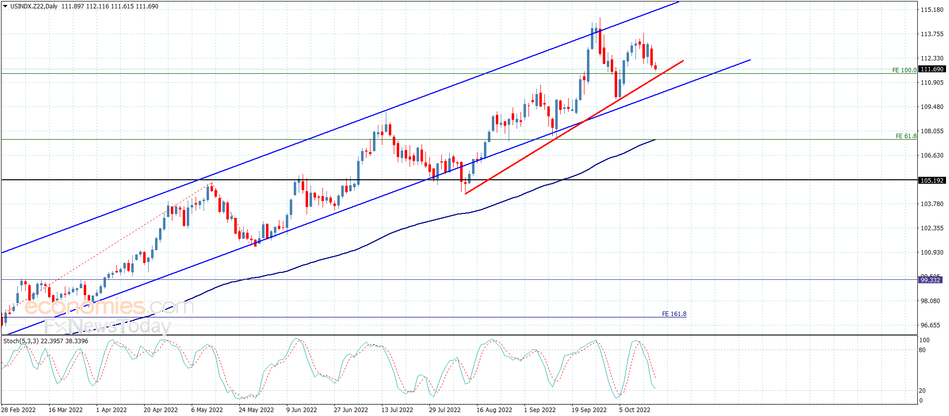 بدأ سعر المؤشر بالاستسلام لسلبية مؤشر ستوكاستيك لنلاحظ تشكيله لزحف سلبي جديد ملامسا بذلك لمستوى 111.60, بالرغم من الثبات العام ضمن محاور القناة الصاعدة إلا أن استمرار تعرض السعر للضغوط السلبية قد يجبره على كسر الدعم الإضافي الممتد نحو 111.30 بهدف استئناف الهبوط التصحيحي والوصول نحو 110.80 و110.25 على التوالي.