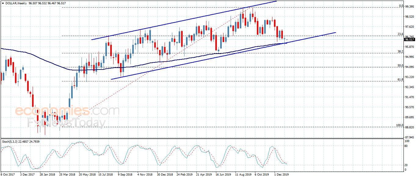 بالرغم من تشكيل سعر المؤشر خلال الفترة الأخيرة لتداولات جانبية ضعيفة, إلا أن ثباته فوق دعم القناة الصاعدة والممتد نحو 96.25 يزيد من فرص تجديده للمحاولات الصاعدة خلال الفترة القريبة والمتوسطة.