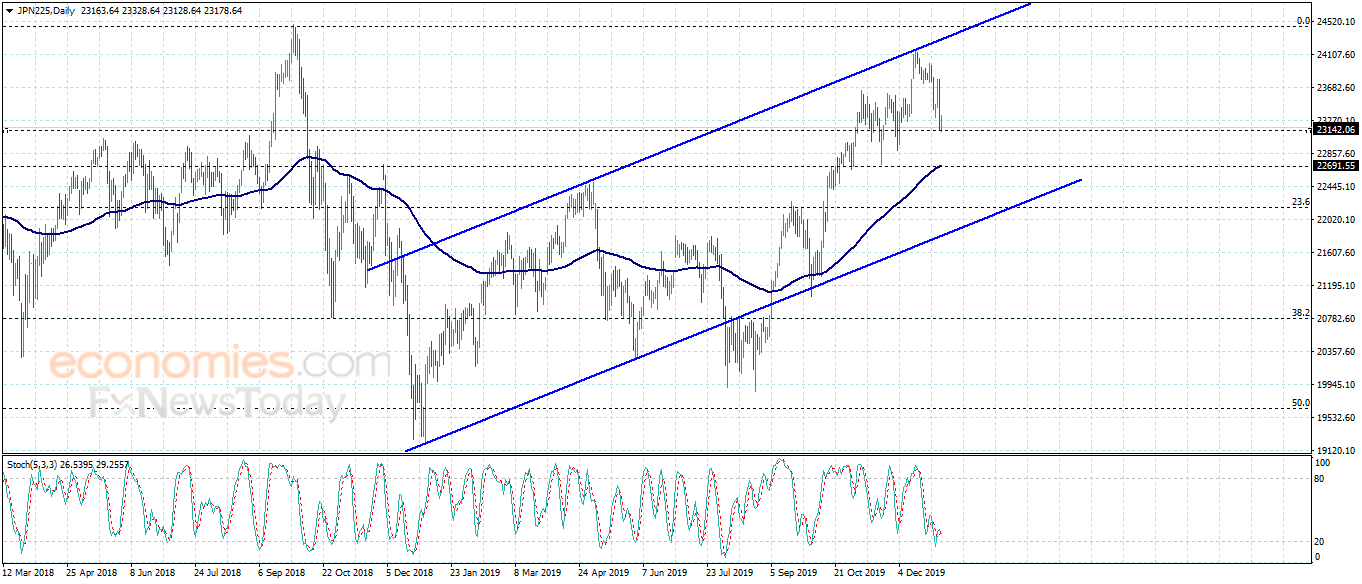 نطاق التداول المتوقع لهذا اليوم ما بين 23340.00 و 22950.00