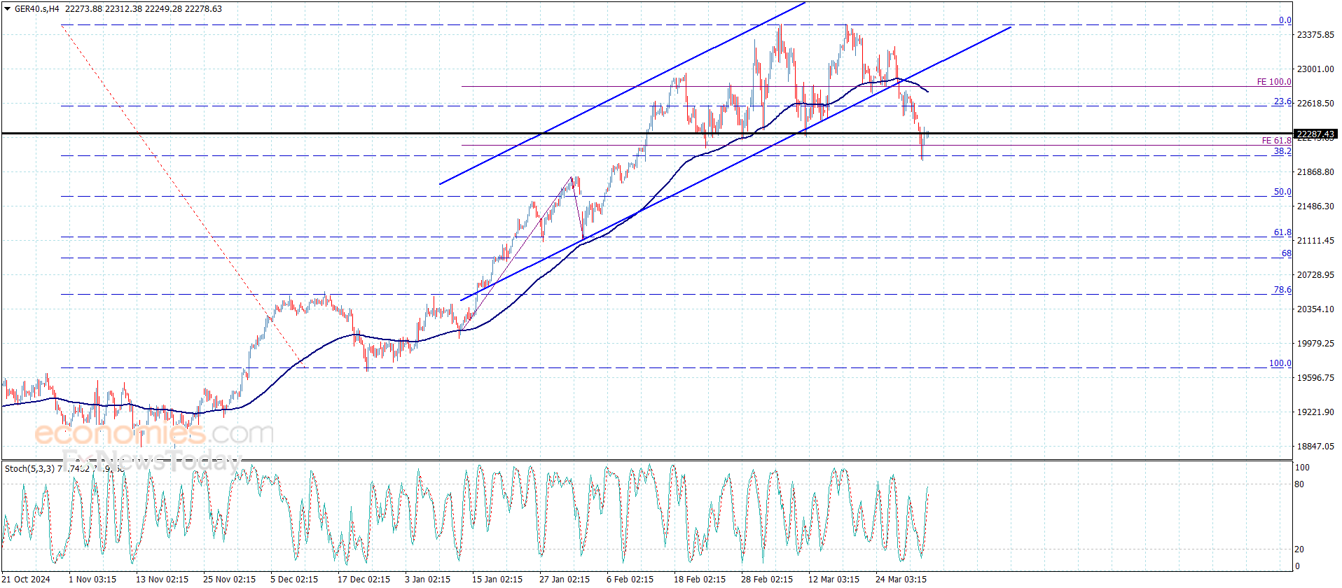 أنهى سعر المؤشر الهجوم السلبي الأخير بمواجهته لمستوى تصحيح 38.2% فيبوناتشي المتمركز عند 22020.00 محققا بذلك الأهداف التصحيحية المنتظرة سابقا ومن ثم ليبدأ بتجديد المحاولات الصاعدة باندفاعه حاليا نحو 22425.00.