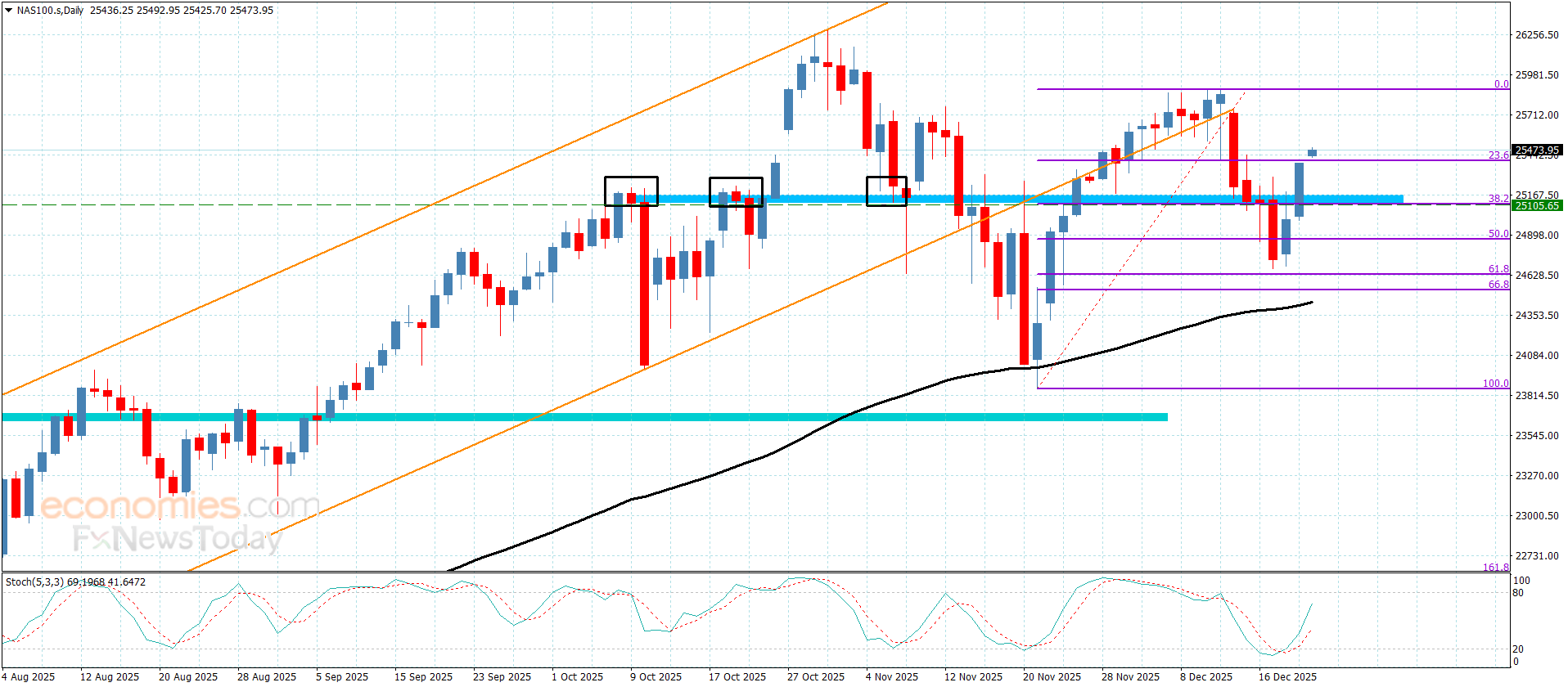 أعلن سعر المؤشر عن تحرره من سيطرة الميل التصحيحي الهابط بتجاوزه مؤخرا للحاجز المستقر عند 25260.00 ليمكنه ذلك بتشكيل موجات صاعدة قوية ليستقر فوق مستوى تصحيح 23.6% فيبوناتشي المتمركز عند 25400.00 محاولا تسجيل بعض المكاسب بملامسته لمستوى 25490.00.