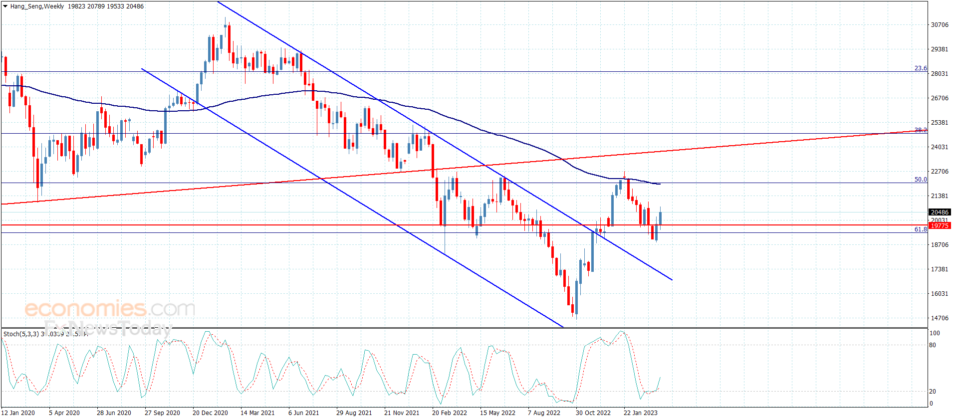 قدّم سعر المؤشر إشارة إيجابية بتشكيله لارتداد صاعد قوي ليستقر من خلاله فوق مستوى تصحيح 61.8% فيبوناتشي المتمركز عند 19350 لنلاحظ بدء تحقيقه لبعض المكاسب بوصوله نحو 20790.