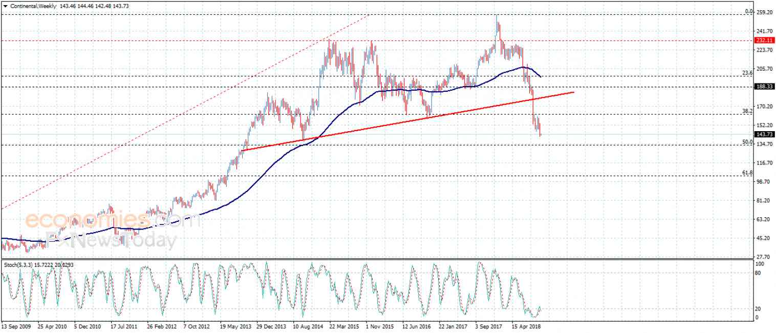 اعلن سعر السهم عن تمسكه بسيطرة الميل الهابط بتقديمه لإغلاق سلبي جديد دون المقاومة الأولية المتمركزة عند 162.35 مشكلا بذلك زحف سلبي جديد بملامسته لمستوى 141.35. نتوقع تجديد السعر للمحاولات السلبية ليضغط بذلك على مستوى تصحيح 50% فيبوناتشي والمستقر عند 133.20 وبكسره لهذا الحاجز سيزيد ذلك من فرص الوصول نحو الهدف الرئيسي والمستقر حول 104.00.