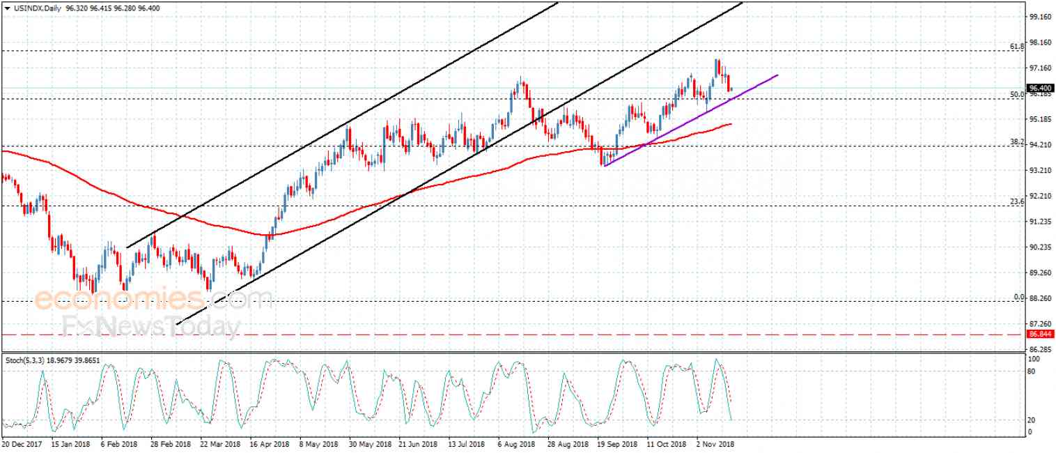 نكرر التنويه إلى أن محاولة تسلل السعر دون الدعم المستهدف حاليا, فإن ذلك سيؤكد استعداده لبناء ميل سلبي جديد وليؤكد بذلك استعداده لتسجيل المزيد من الأهداف بانجذابه نحو 95.50 و 94.80 على التوالي.