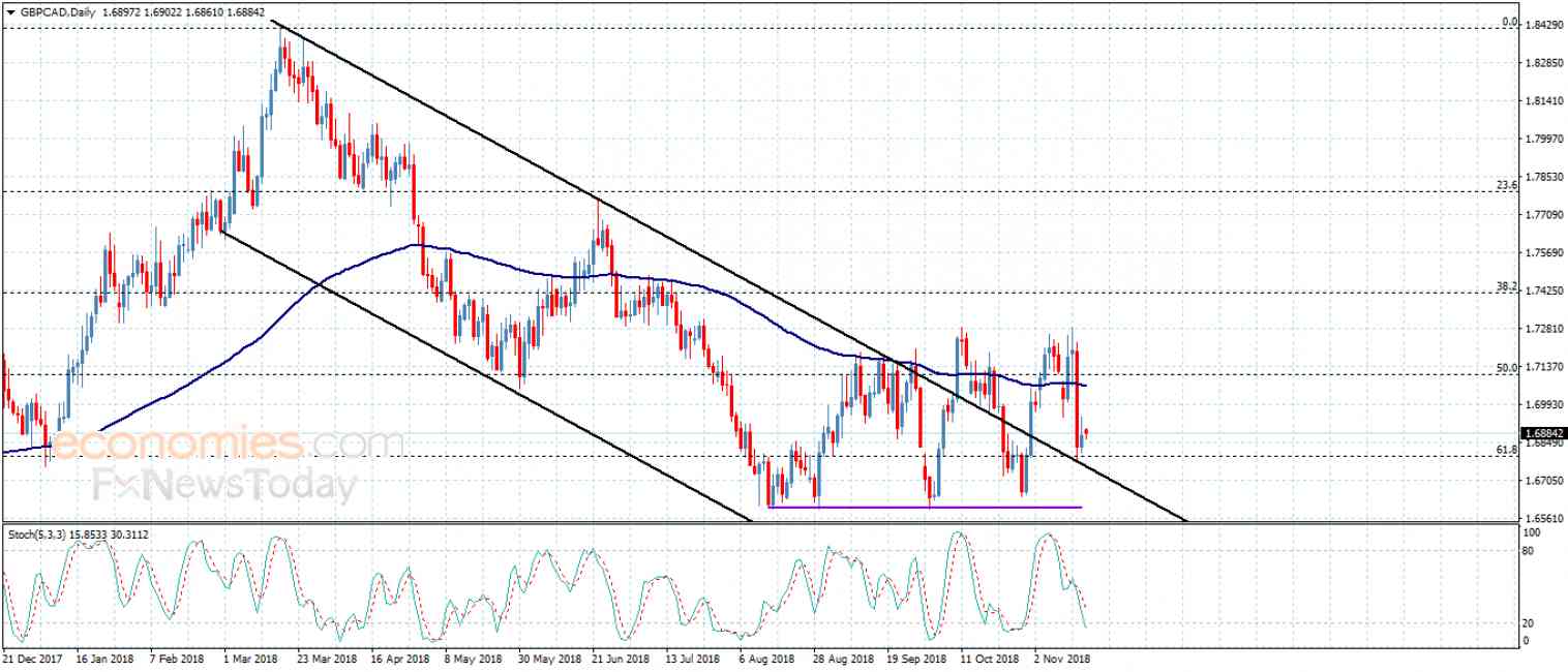 أكد سعر الزوج تخلصه من سيطرة الميل التصحيح الهابط بتحقيقه لاختبار الدعم المحوري الممتد نحو 1.6783 ليبدأ بتشكيل بعض التداولات الصاعدة كما هو واضح بالرسم المرفق. نتوقع بتجميع السعر لعزم إيجابي جديد تشكيله لهجوم صاعد ليستهدف بذلك مستوى 1.7010 ومن ثم لننتظر وصوله نحو مستوى تصحيح 50% فيبوناتشي والمتمركز حول 1.7103.