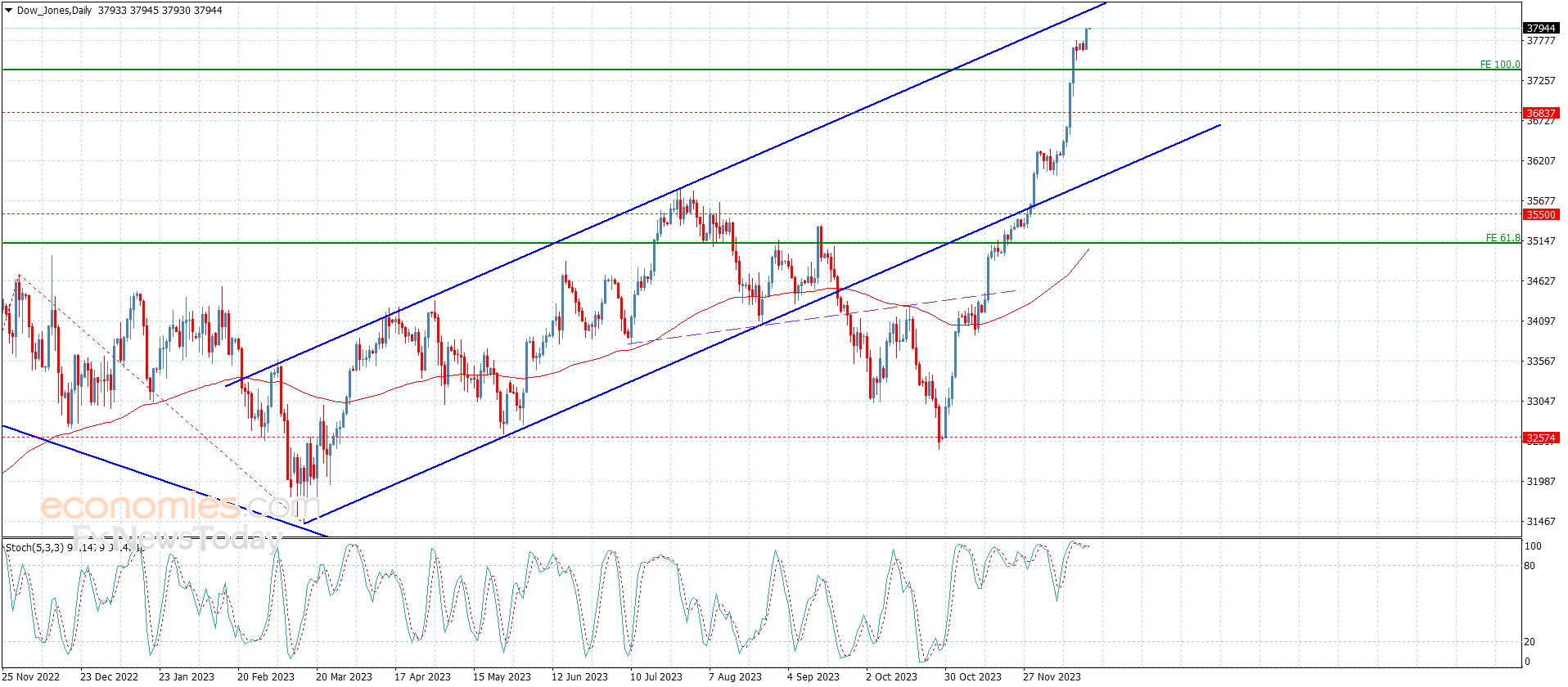 أنهى سعر المؤشر الاندفاع الصاعد بتداولات يوم أمس بتسجيله للهدف الإضافي الأول المستقر عند 37935 وليستقر قربه ليؤكد تمسكه المستمر بسيطرة الميل الصاعد المقترح سابقا.