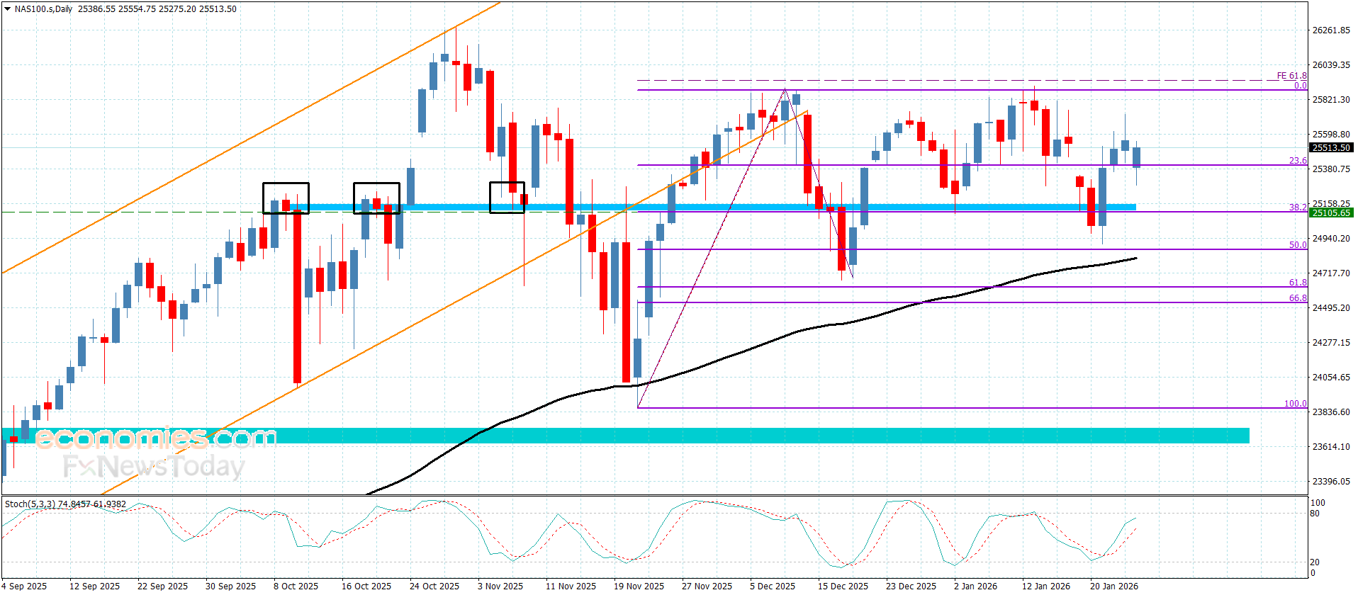 نطاق التداول المتوقع لهذا اليوم ما بين 25235.00 و 25610.00