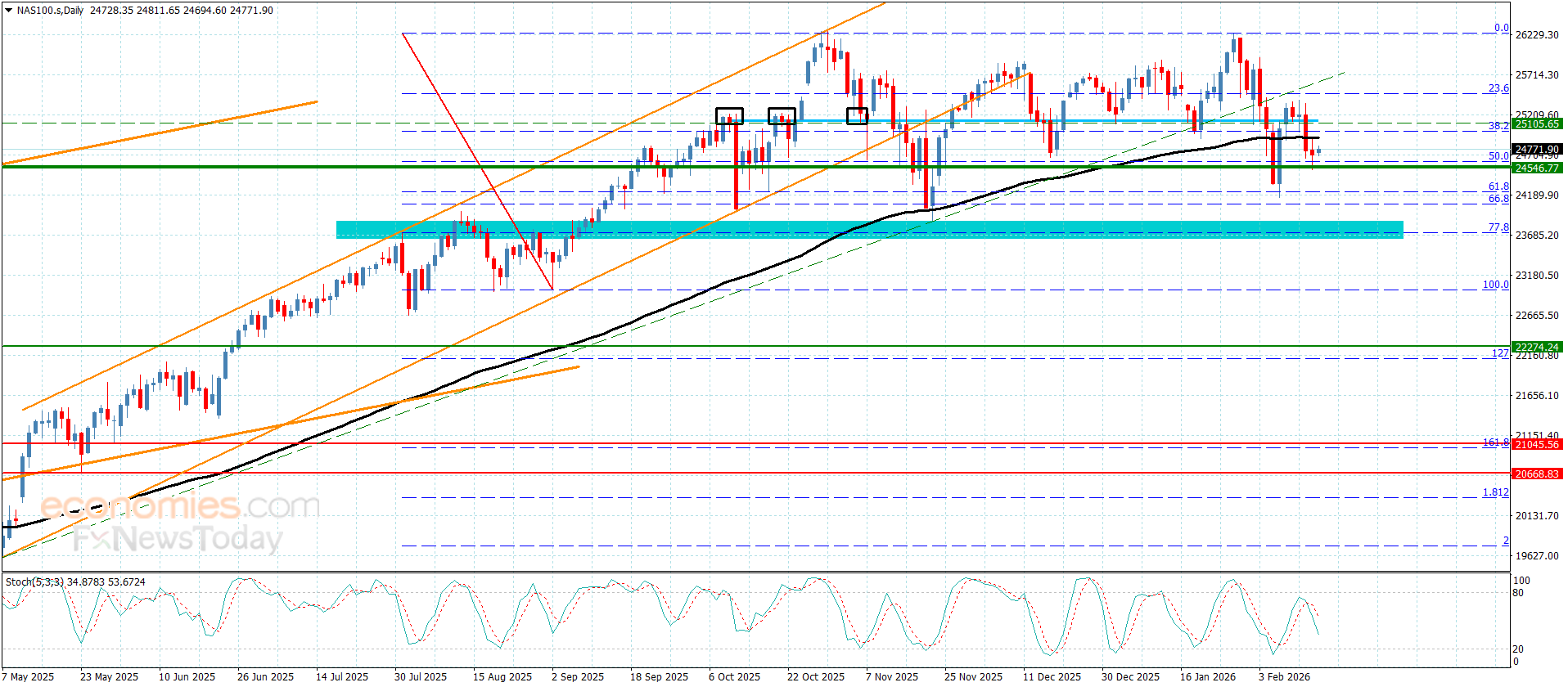 نطاق التداول المتوقع لهذا اليوم ما بين 24470.00 و 24910.00