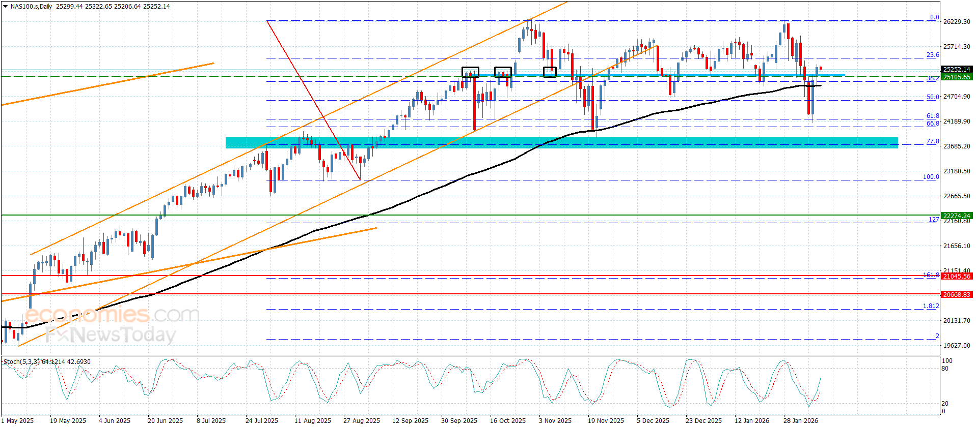 نؤكد على أهمية ثبات تداولات هذا اليوم فوق الحاجز المخترق ليعزز فرص استهدافه للمحطات الإيجابية والتي تتمركز حاليا قرب 25570.00 و25790.00 على التوالي, أما الهبوط مجددا دون 25150.00 سيجبره ذلك على تشكيل موجات هابطة جديدة ليتكبد من خلالها العديد من الخسائر بتسلله أولا نحو 24900.00 و24685.00.