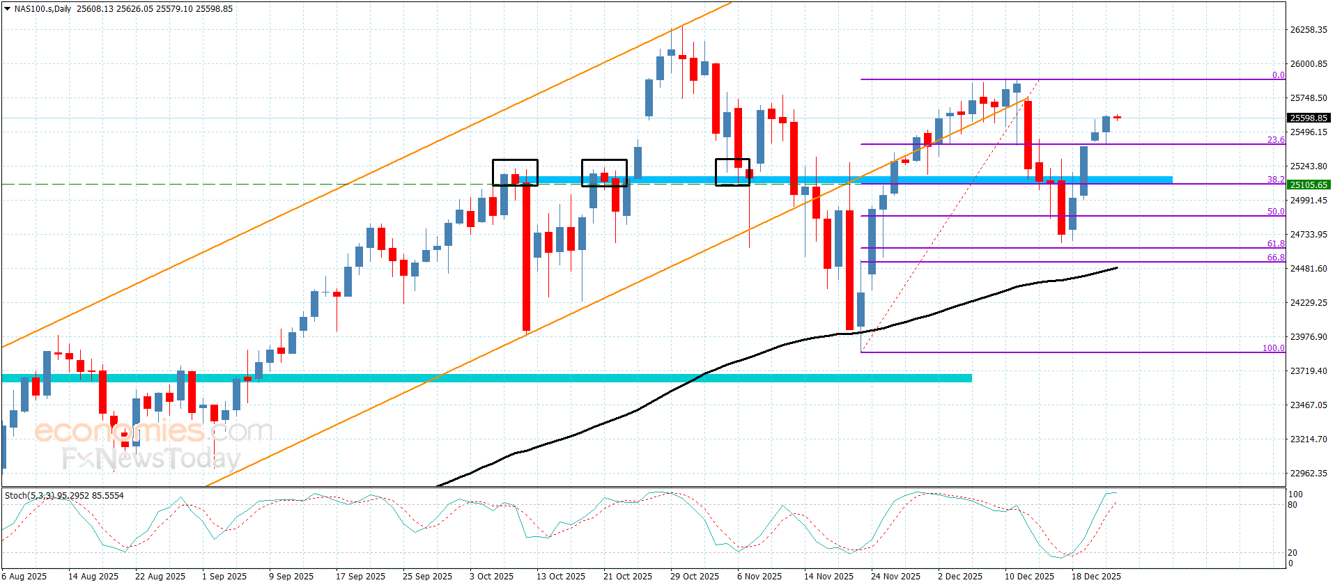 نطاق التداول المتوقع لهذا اليوم ما بين 25460.00 و 25720.00