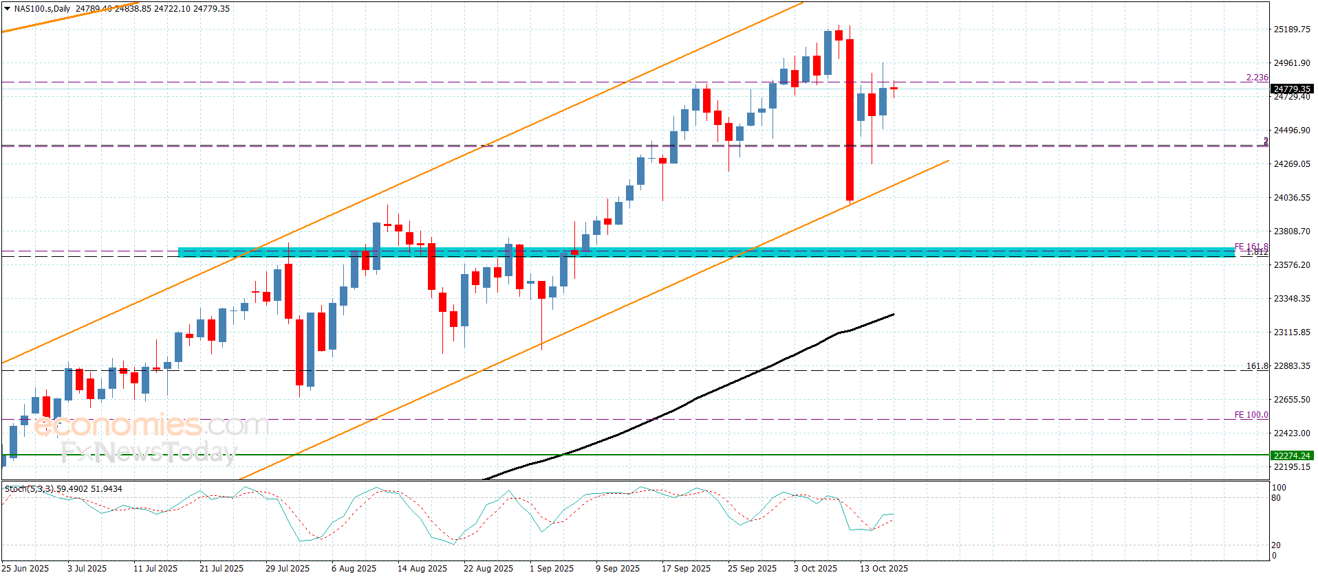 حقق سعر المؤشر العديد من الأهداف الإيجابية بتداولات يوم أمس بملامسته لمستوى 24960.00 ومن ثم ليرتد مباشرة للاستقرار دون الحاجز المتمركز عند 24830.00.