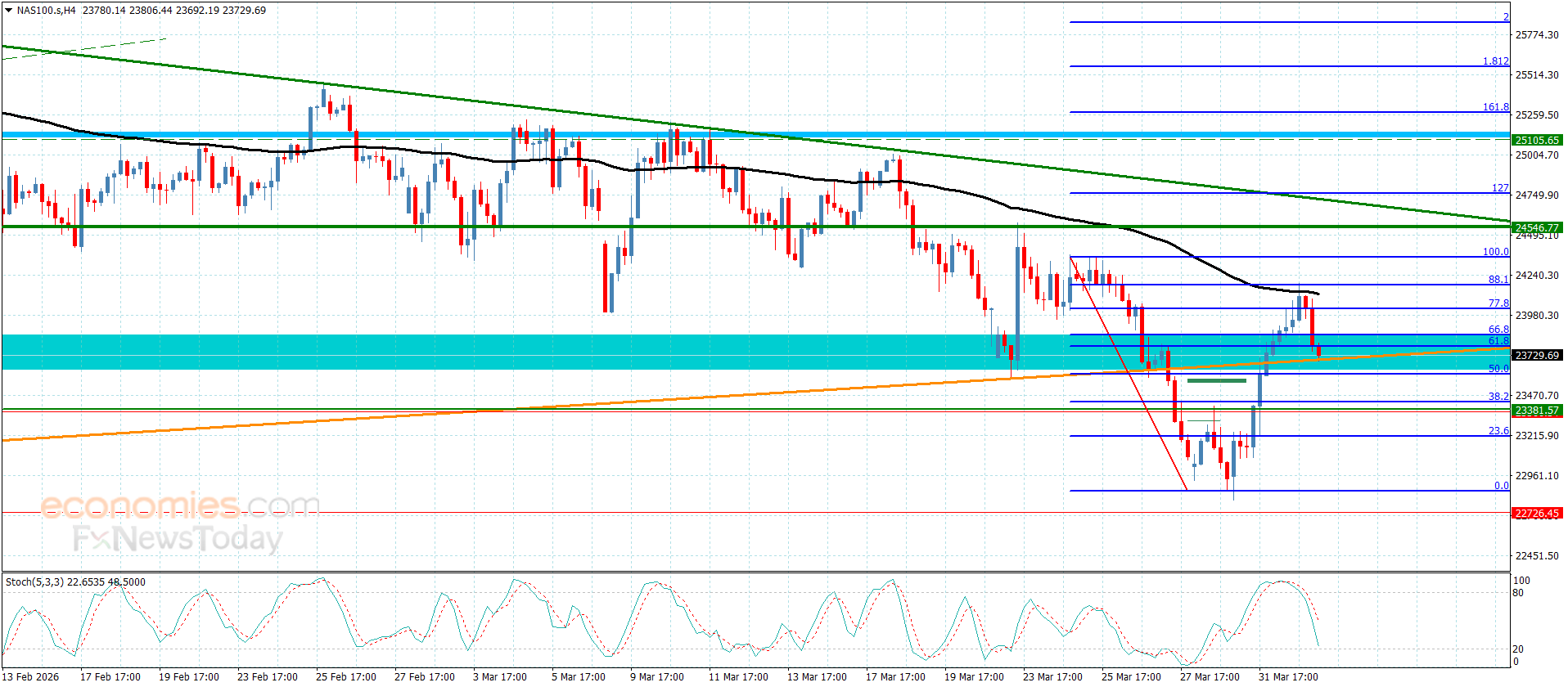نود التنويه إلى أن محاولة تفعيل السعر للهجوم السلبي من جديد يتطلب تسلله دون 23550.00 وتقديمه لإغلاق سلبي أدناه ليسهل ذلك مهمة استهدافه لمحطات سلبية إضافية قد تبدأ من 23400.00 و23305.00, أما فشل الكسر سيجبره ذلك على تقديم تداولات مختلطة مع توفر فرصة للاندفاع مجددا نحو 23870.00 و24050.00 على التوالي.