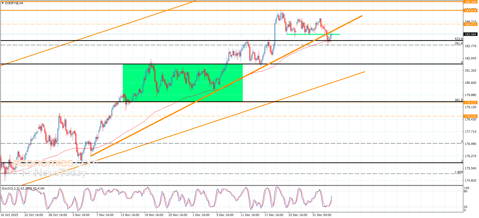 تعرض سعر الزوج بتداولات يوم أمس لضغوط سلبية قوية لنلاحظ تسلله بذلك دون دعم القناة الصاعدة المتمثل بمستوى 183.45 ليضطر لتكبد خسائر لحظية باستهدافه لمستوى 182.80 والذي يشكل بدوره مستوى دعم مهم ليستغل ذلك باندفاعه مجددا نحو 183.40.