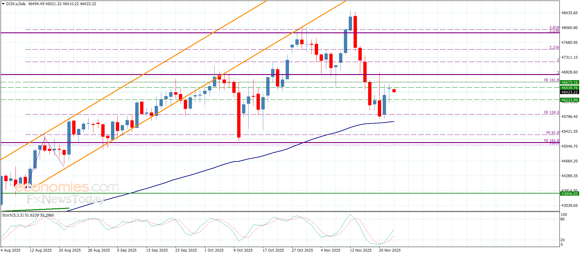 سعر مؤشر الداو جونز يستقر دون الحاجز-توقعات اليوم 25-11-2025