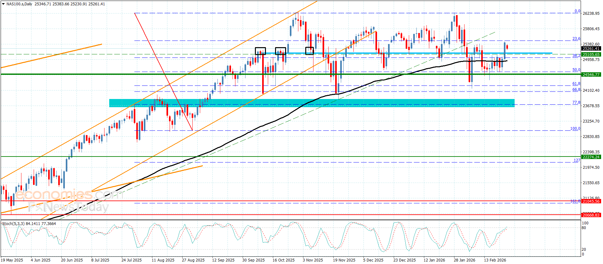 نطاق التداول المتوقع لهذا اليوم ما بين 25135.00 و 25570.00