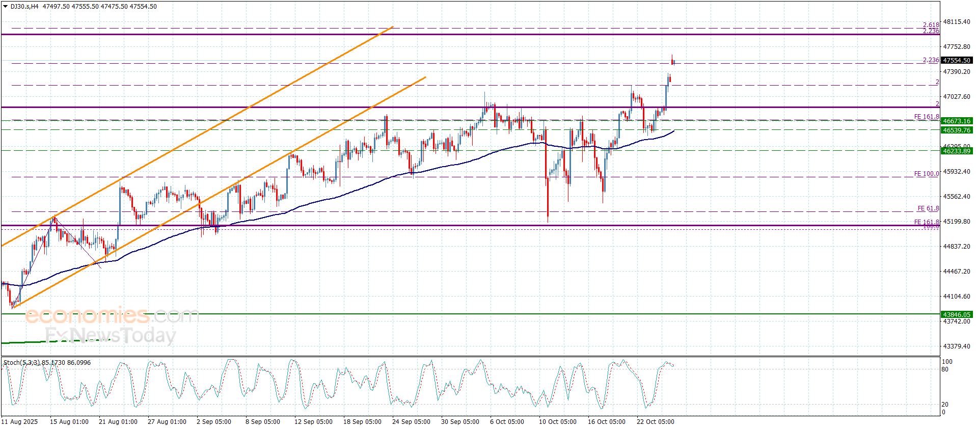 أكد سعر المؤشر استسلامه المستمر لسيطرة الميل الصاعد بثباته بتداولات يوم الجمعة فوق المقاومة المستقرة عند 47185 وتسجيله لمكاسب إضافية بملامسته لمستوى 47355 لنلاحظ افتتاحه لتداولات هذا الصباح بتشكيله لفجوة سعرية صاعدة ليلامس من خلالها لمستوى 47632.