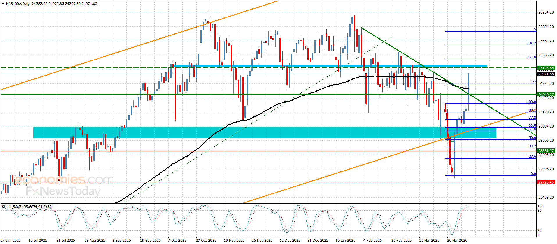 استغل سعر المؤشر التحديثات الأمريكية بتشكيله منذ تداولات هذا الصباح لهجوم صاعد قوي ليقفز بذلك فوق المقاومة الممتد نحو 24550.00 وليبدأ بتسجيل مكاسب كبيرة بوصوله حاليا نحو 25000.00.