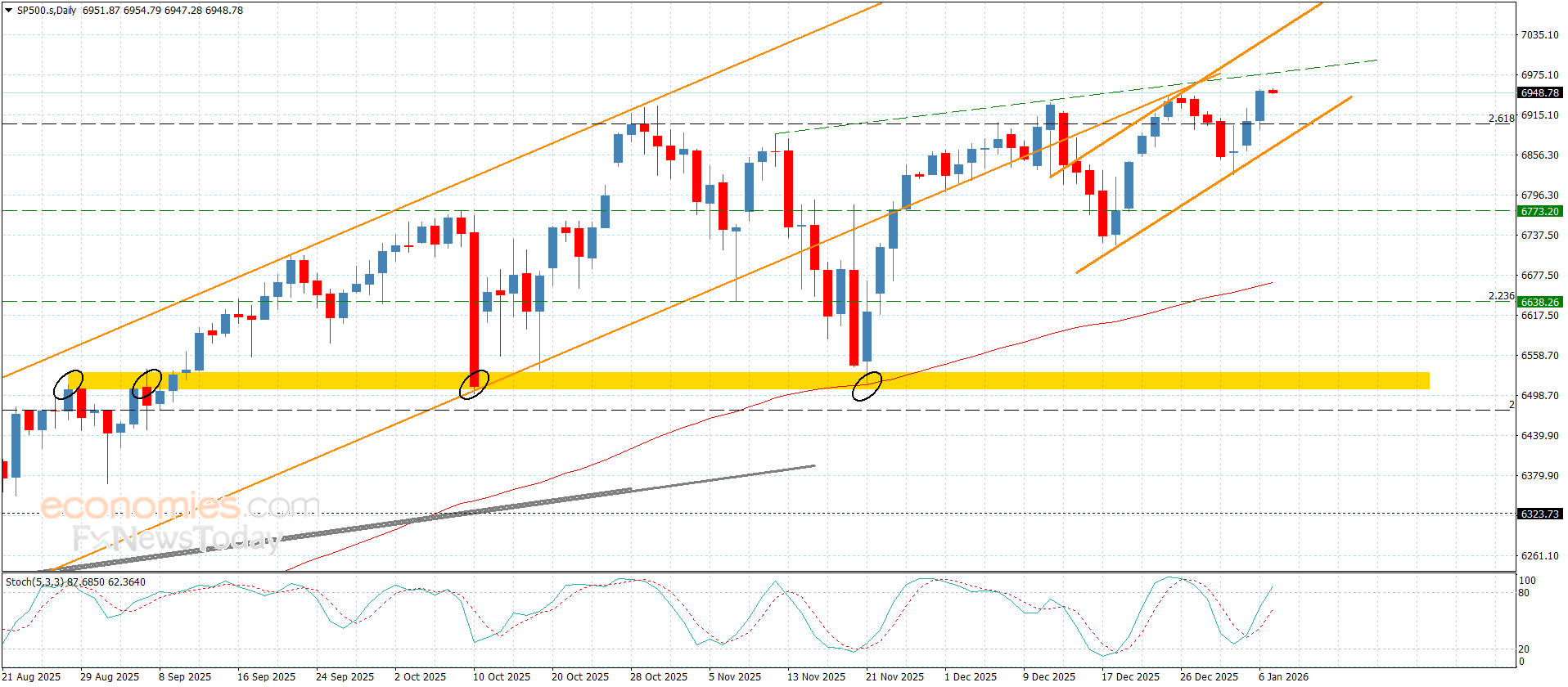 كذلك اتحاد المؤشرات الرئيسية بتوفيرها للعزم الإيجابي سيدعم الترجيح الصاعد لنتوقع مهاجمة السعر قريبا لمستوى 6980.00 وبتجاوزه سينجح بالضغط على الحاجز النفسي المستقر عند 7000.00 لنتوقع استهدافه مباشرة للهدف التاريخي التالي المستقر عند 7025.00.