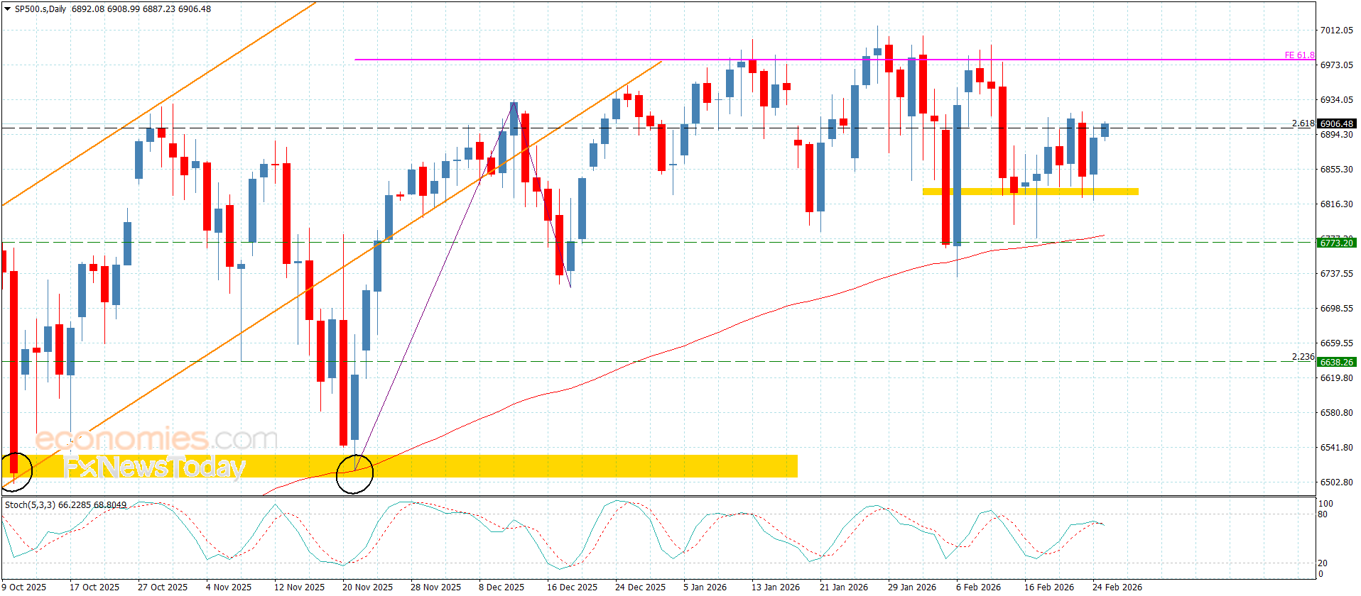 حافظ سعر المؤشر على استقراره الإيجابي فوق الدعم الإضافي المستقر عند 6825.00 ليمكنه ذلك من تشكيل موجات صاعدة جديدة لنلاحظ تقديمه حاليا لضغوط قوية على العائق المستقر عند 6900.00.