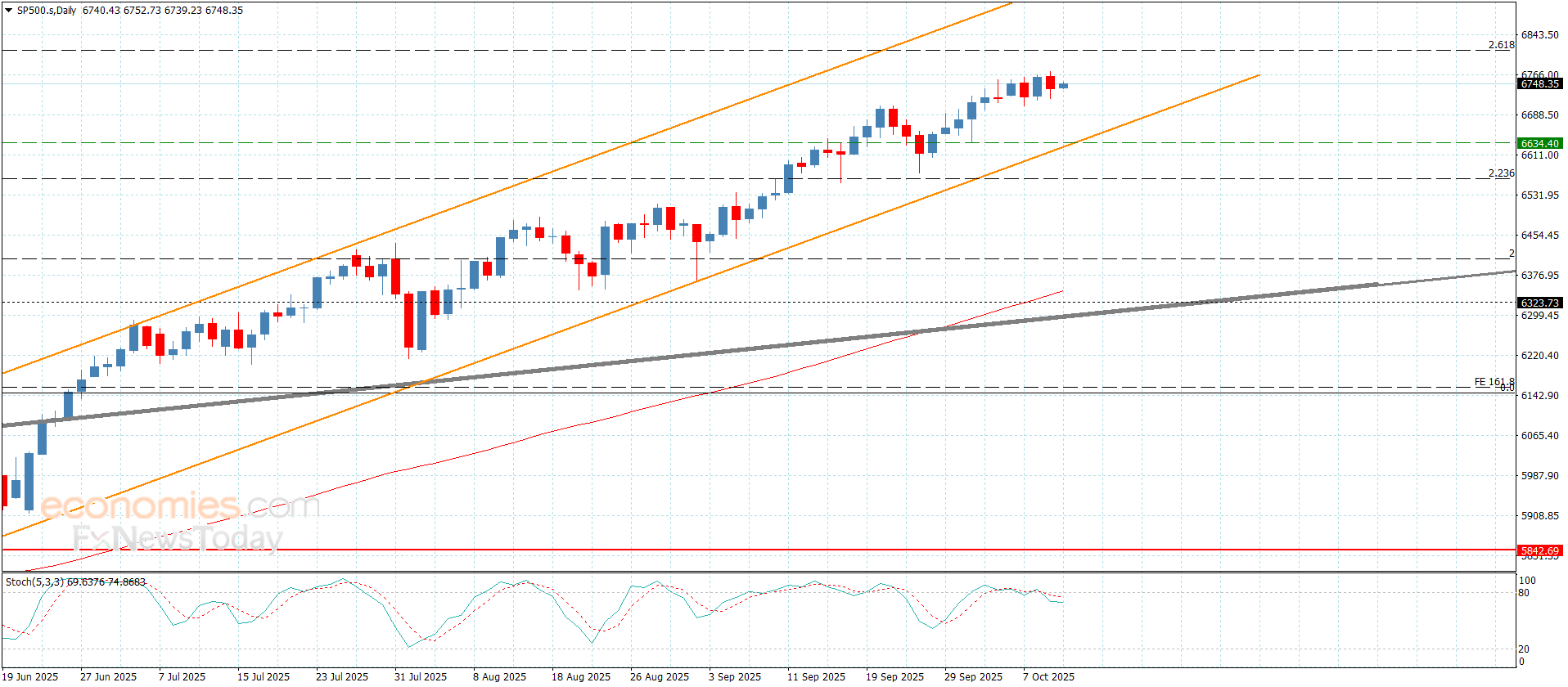 نتوقع استمرار تشكيل السعر حاليا للتداولات الجانبية ولنذكر بأن ثباته فوق الدعم الإضافي المستقر قرب 6700.00 سيساهم بتجديد المحاولات الصاعدة والتي قد تستهدف قريبا لمحطات تاريخية جديدة باندفاعه نحو 6810.00 و6840.00 على التوالي.