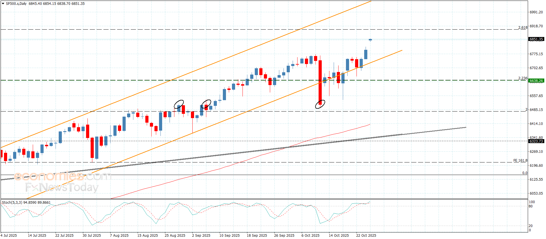 أكد سعر المؤشر استسلامه لسيطرة المسار الصاعد بتشكيله هذا الصباح لفجوة سعرية ليقفز من خلالها فوق القمة المحققة مؤخرا لنلاحظ تسجيله لمكاسب تاريخية جديدة باستقراره قرب 6850.00.