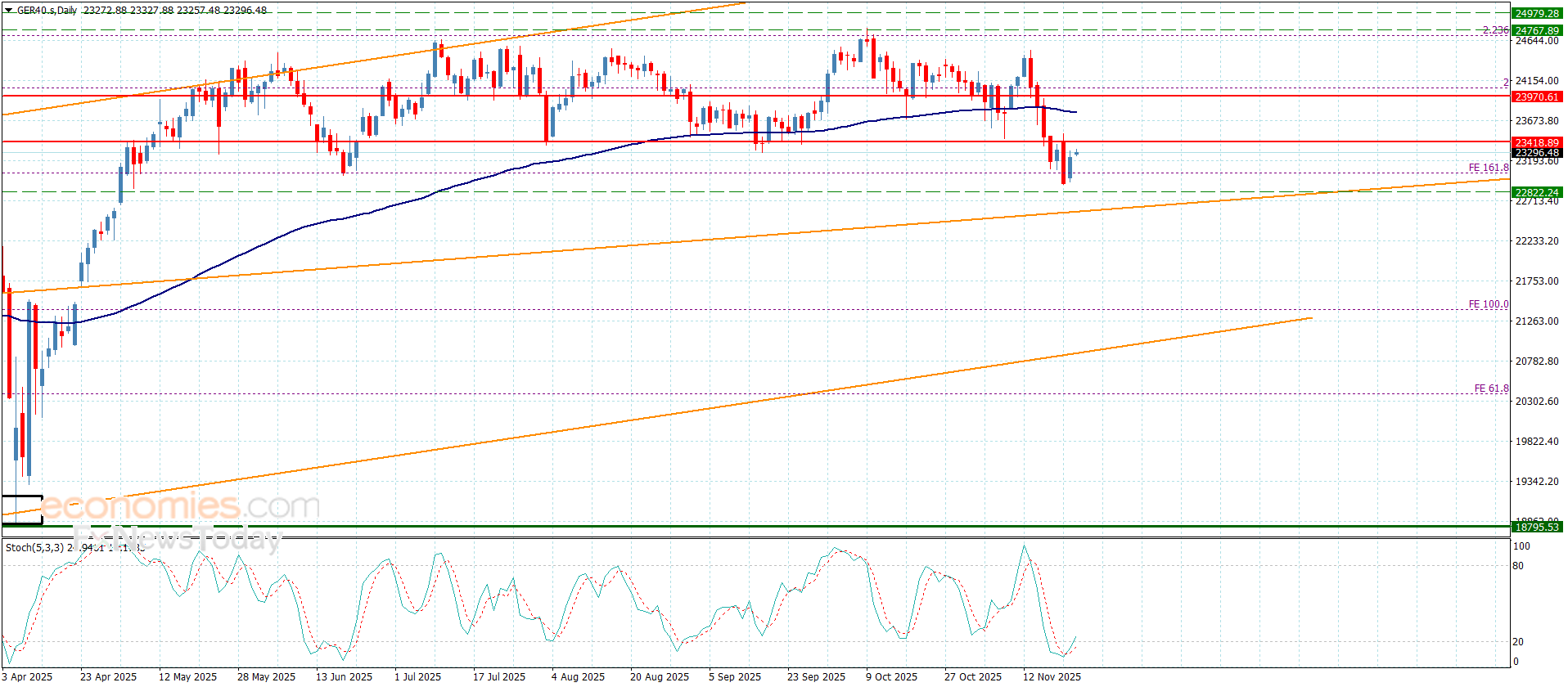 سعر المؤشر الألماني يتأثر بتعارض المؤشرات– توقعات اليوم 24-11-2025