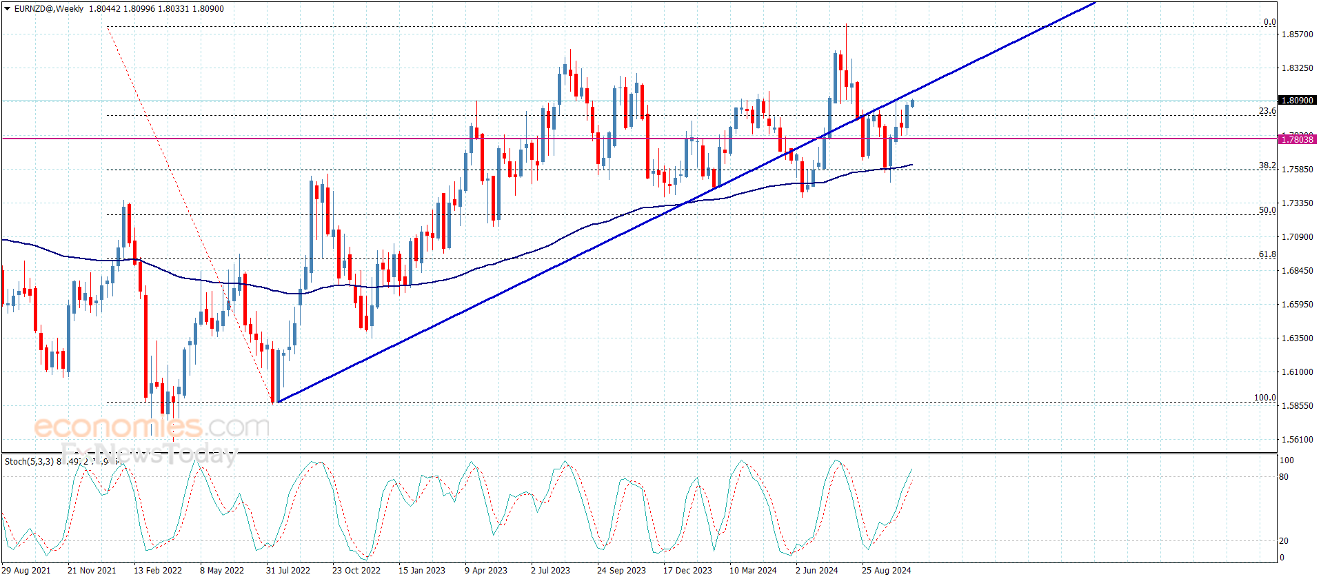 عاد سعر الزوج لتفعيل المحاولات الصاعدة باندفاع مؤشر ستوكاستيك نحو مستوى تشبع الشراء ليتجاوز بذلك مستوى 1.7980 وليبدأ بتسجيل بعض المكاسب باندفاعه حاليا نحو 1.8095.
