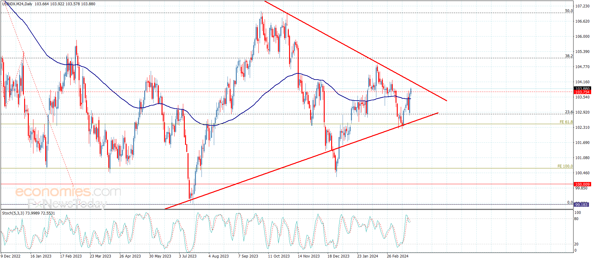 نطاق التداولات المتوقع لهذا اليوم ما بين 103.60 و 104.15