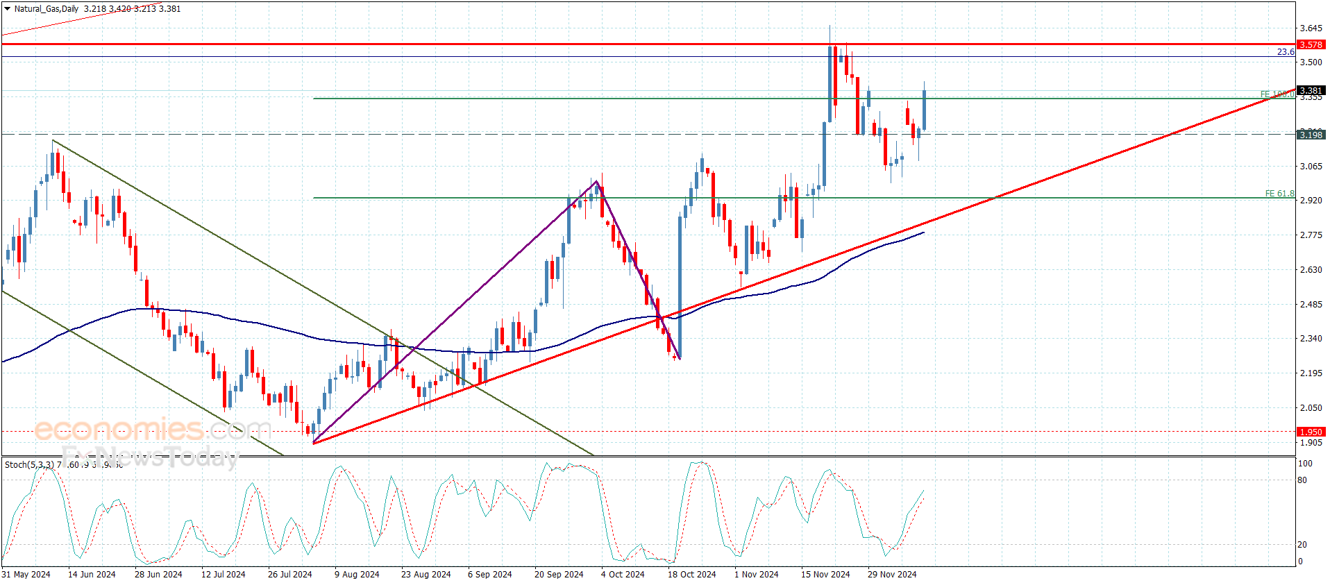 بدأ سعر الغاز تداولات هذا اليوم بإيجابية واضحة نتيجة لتجاوزه للحاجز الإضافي المستقر عند 3.350$ معلنا استعداده لاستئناف الهجوم الصاعد المقترح سابقا.