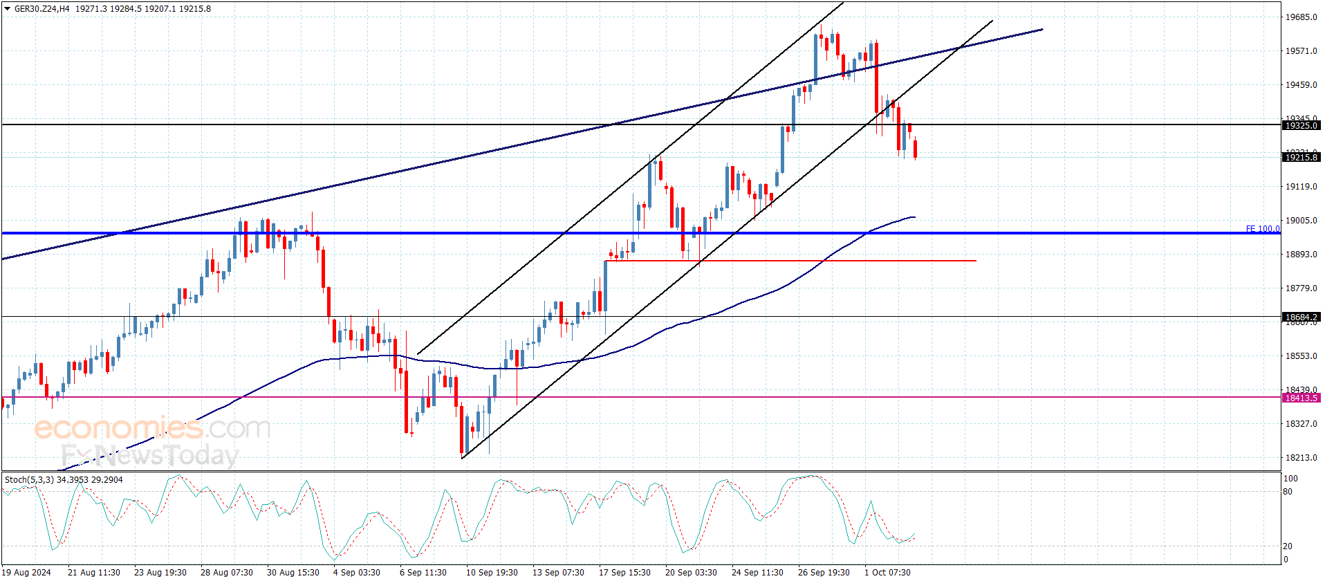 حاليا وبتشكيل مستوى 19325.00 لحاجز جديد أمام التداولات الحالية وبمواصلة تقديم مؤشر ستوكاستيك للعزم السلبي، سيزيد ذلك الضغوط السلبية على تداولات السعر لنتوقع تكبده لخسائر إضافية باستهدافه لمستوى 19115.00 وصولا للدعم الإضافي التالي المستقر عند 18880.00.