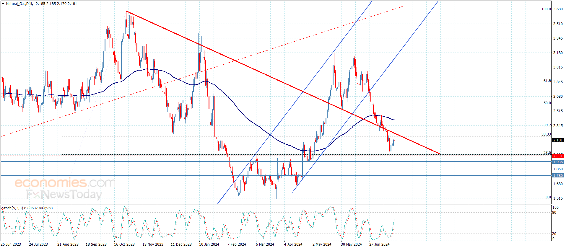 فقد سعر الغاز العزم السلبي باندفاع مؤشر ستوكاستيك حاليا فوق مستوى 50 ليجبره ذلك على تأجيل الهجوم السلبي وتشكيل ارتداد تصحيحي صاعد ليستقر قرب 2.180$.