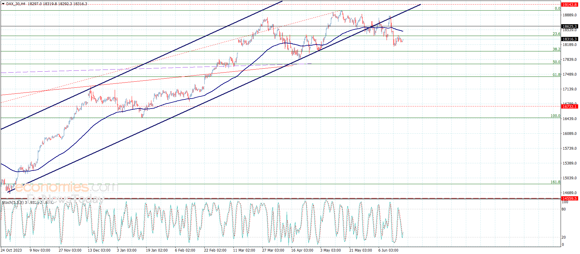 - أنهى سعر المؤشر هجومه السلبي الأخير بملامسته لمستوى 18145.00 ومن ثم ليضطر لتشكيل ارتداد تصحيحي صاعد متأثرا بصمود مؤشر ستوكاستيك فوق مستوى 20 لنلاحظ اختباره حاليا لمستوى تصحيح 23.6% فيبوناتشي المتمركز عند 18400.00 تقريبا.