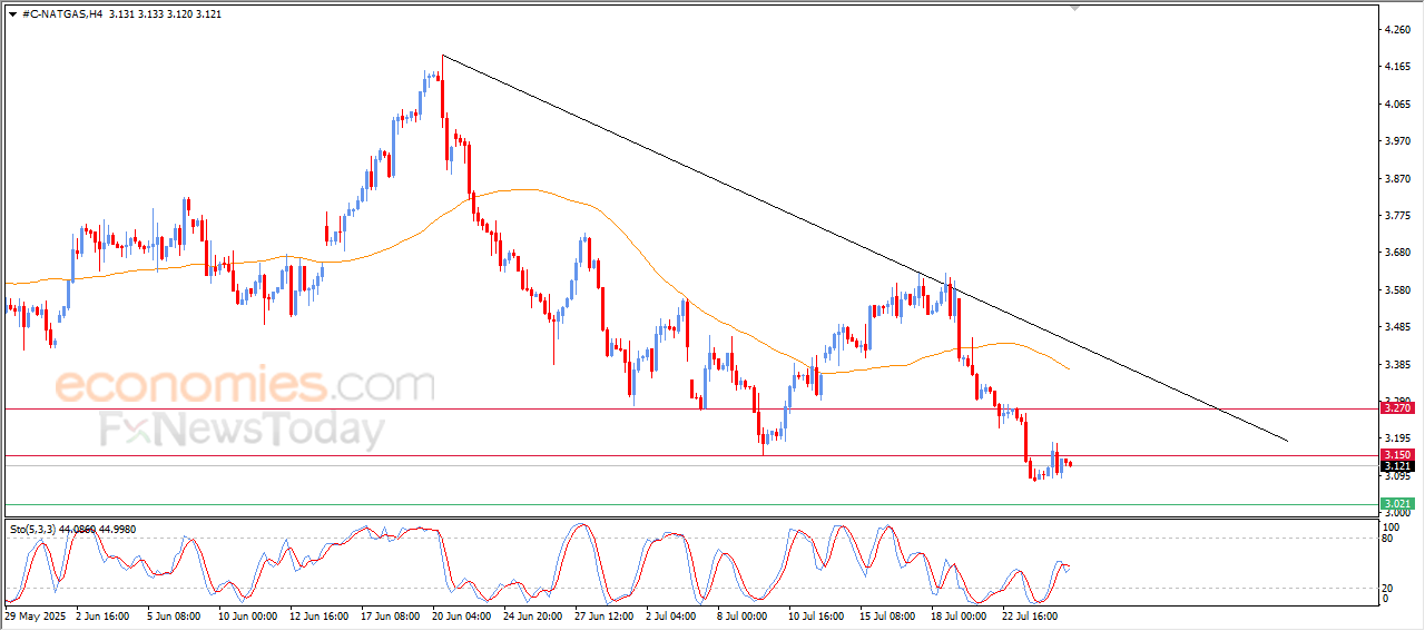 لذلك تشير توقعاتنا إلى انخفاض سعر الغاز الطبيعي خلال تداولاته اللحظية القادمة، خاصة طيلة استقراره دون سعر 3.150$، ليستهدف مستوى الدعم 3.00$.