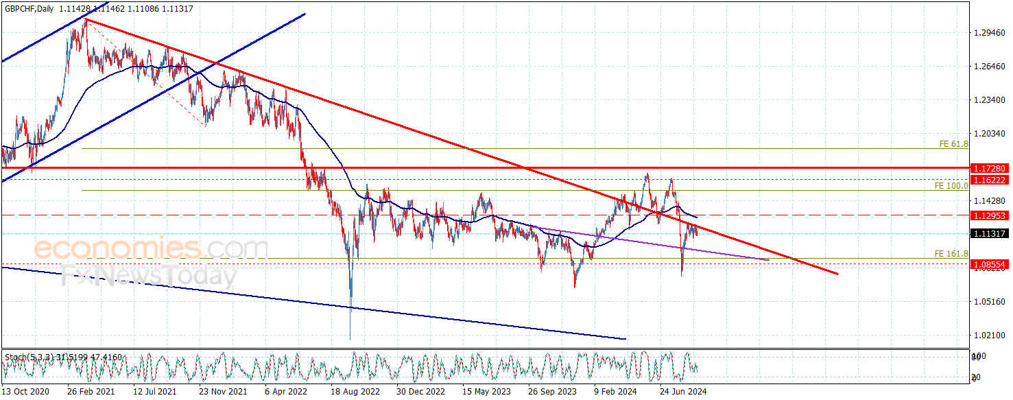 نلاحظ تمركز المتوسط المتحرك 55 فوق المقاومة المحورية ليؤكد بدوره احتجاز التداولات ضمن المسار الهابط، كذلك بدء تقديم مؤشر ستوكاستيك للعزم السلبي سيزيد من فرص استهداف السعر قريبا لمحطات سلبية إضافية بتسلله نحو 1.1055 وصولا للدعم الإضافي الممتد نحو 1.0975.