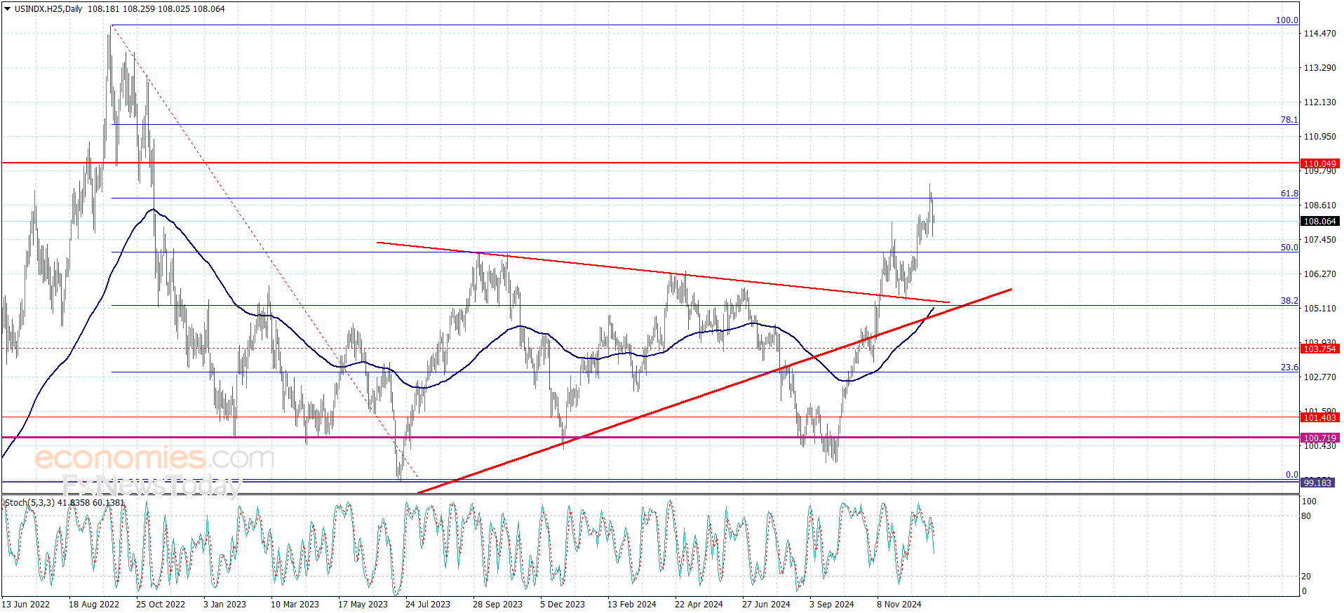 أكد سعر المؤشر استسلامه حاليا لسيطرة الميل التصحيحي الهابط بثباته المتكرر دون مستوى تصحيح 61.8% فيبوناتشي والمتمركز عند 108.85 لنلاحظ استهدافه يوم أمس لبعض المحطات السلبية بملامسته لمستوى 107.55.