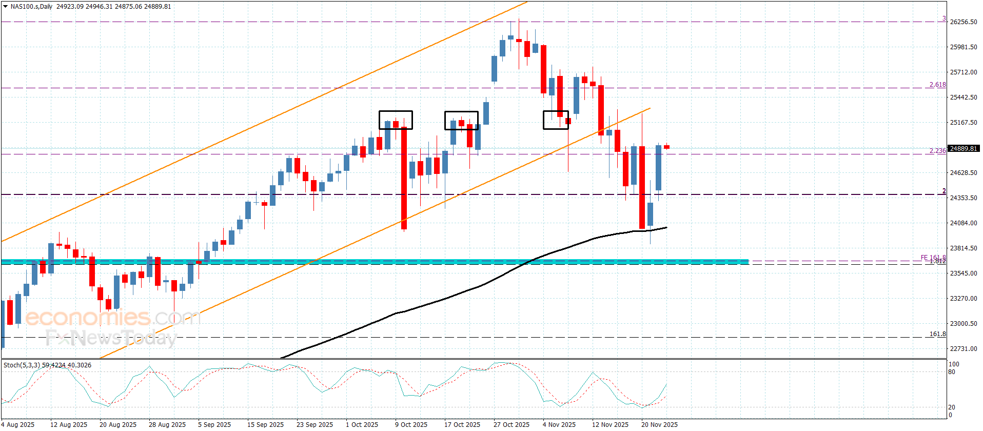 سعر مؤشر ناسداك يقفز فوق الحاجز-توقعات اليوم 25-11-2025