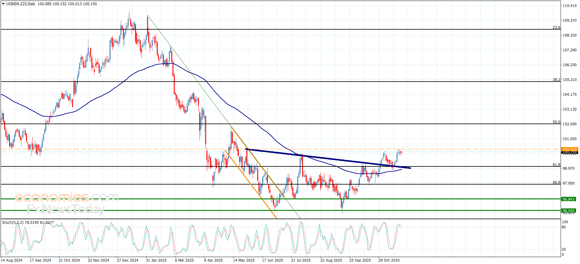 سعر مؤشر الدولار الأمريكي يكرر التذبذب الجانبي– توقعات اليوم 25-11-2025