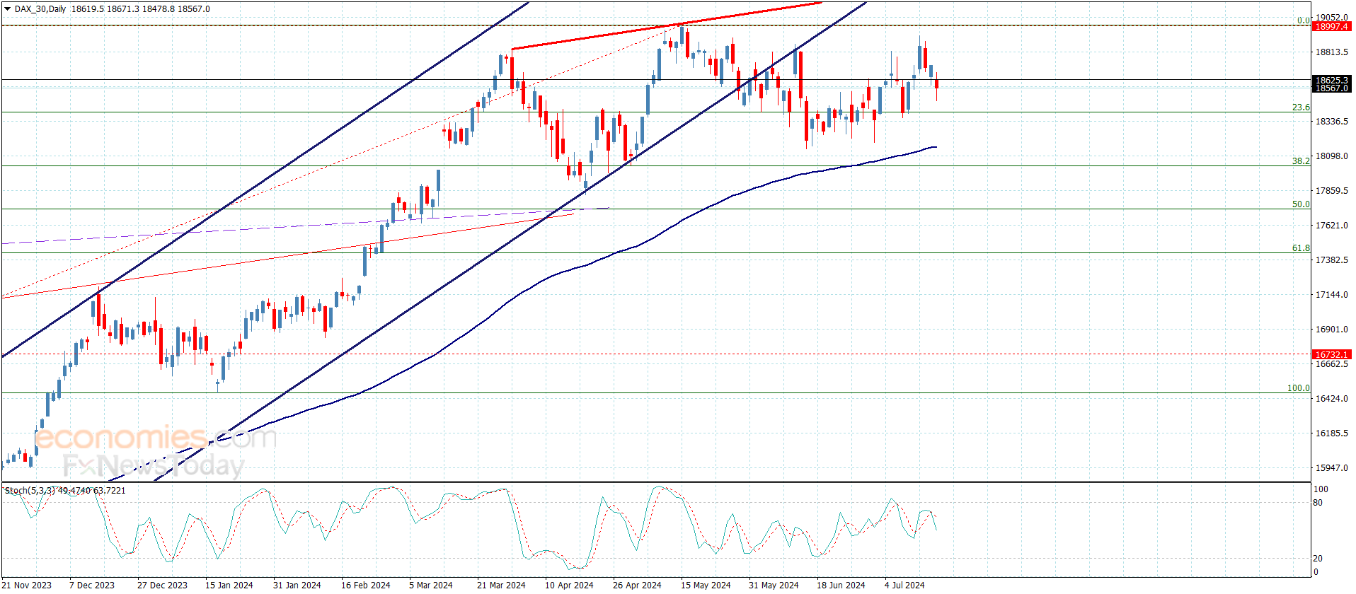 واصل سعر المؤشر تشكيله لتداولات تصحيحية هابطة بتعرضه يوم أمس لضغوط سلبية جديدة لنلاجظ تسلله دون الدعم الإضافي المستقر عند 18625.00 وملامسته لمستوى 18480.00.