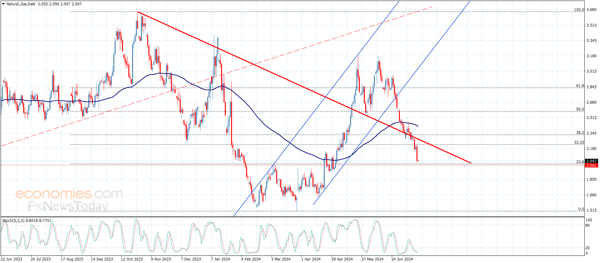 قدّم سعر الغاز بتداولات الأخيرة إغلاق سلبي جديد دون المقاومة الممتدة نحو 2.300$ لنلاحظ تشكيله لموجات هابطة جديدة متجاوزا بذلك الهدف السلبي الأول المستقر عند 2.100$.