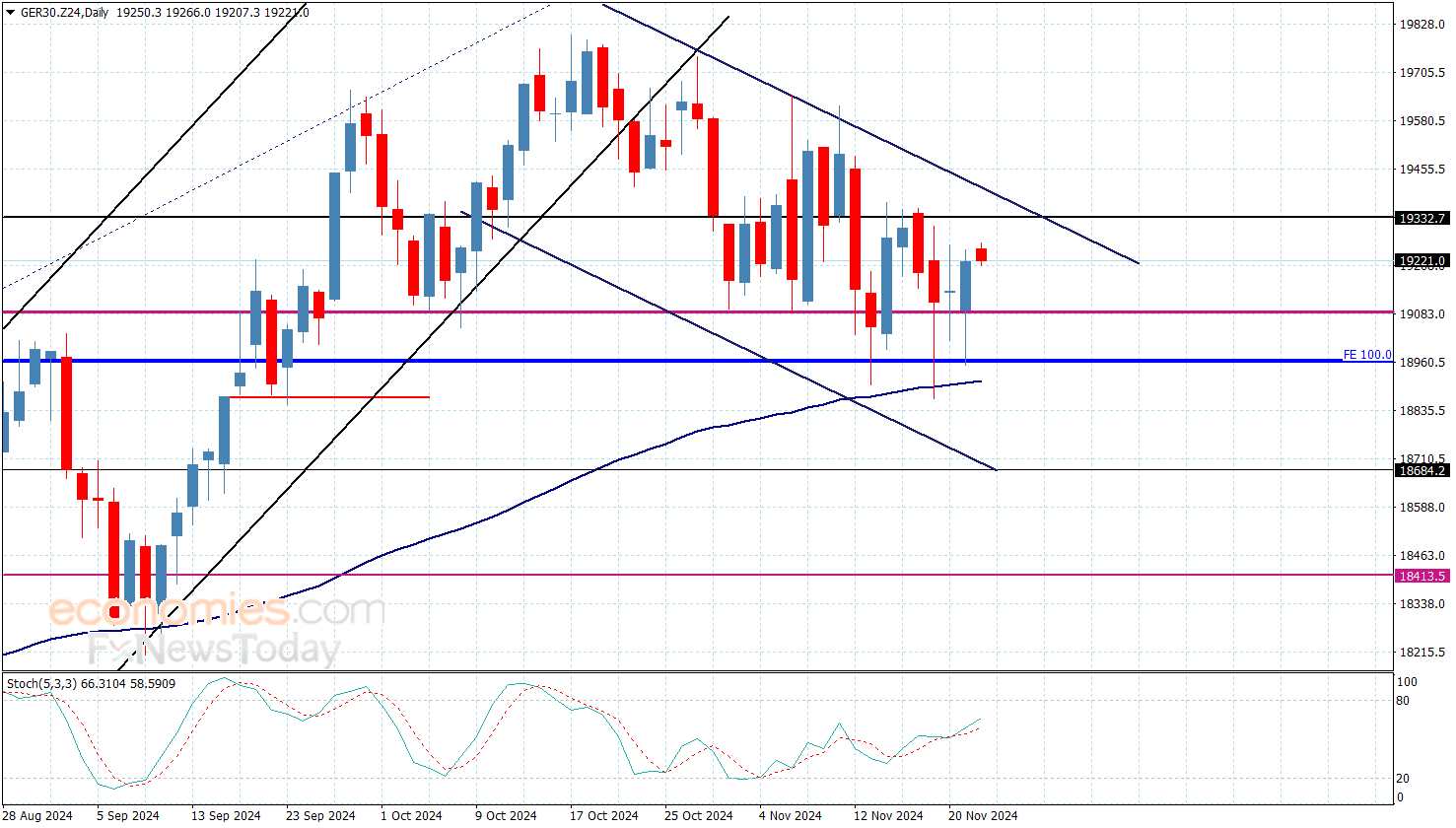 بالرغم من ثبات سعر المؤشر ضمن محاور القناة الهابطة إلا أن ثباته مؤخرا فوق الدعم الإضافي المستقر عند 18950.00 دفع به لتشكيل ارتداد تصحيحي صاعد ليستقر بذلك قرب 19265.00.