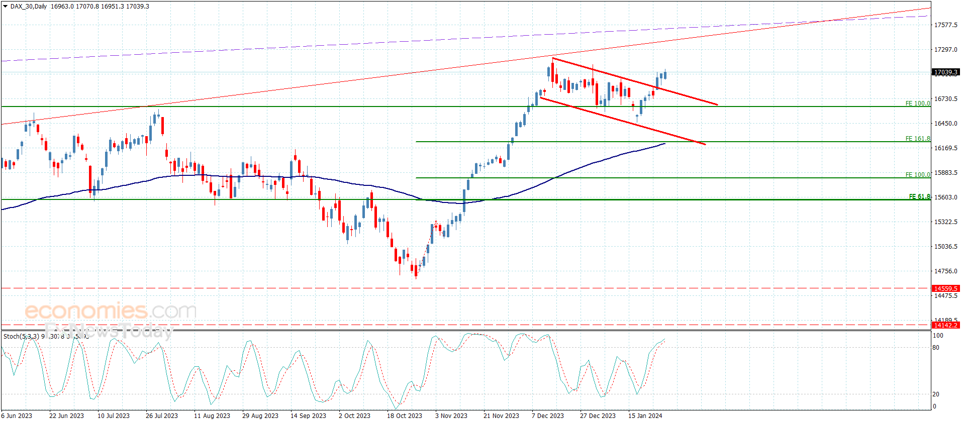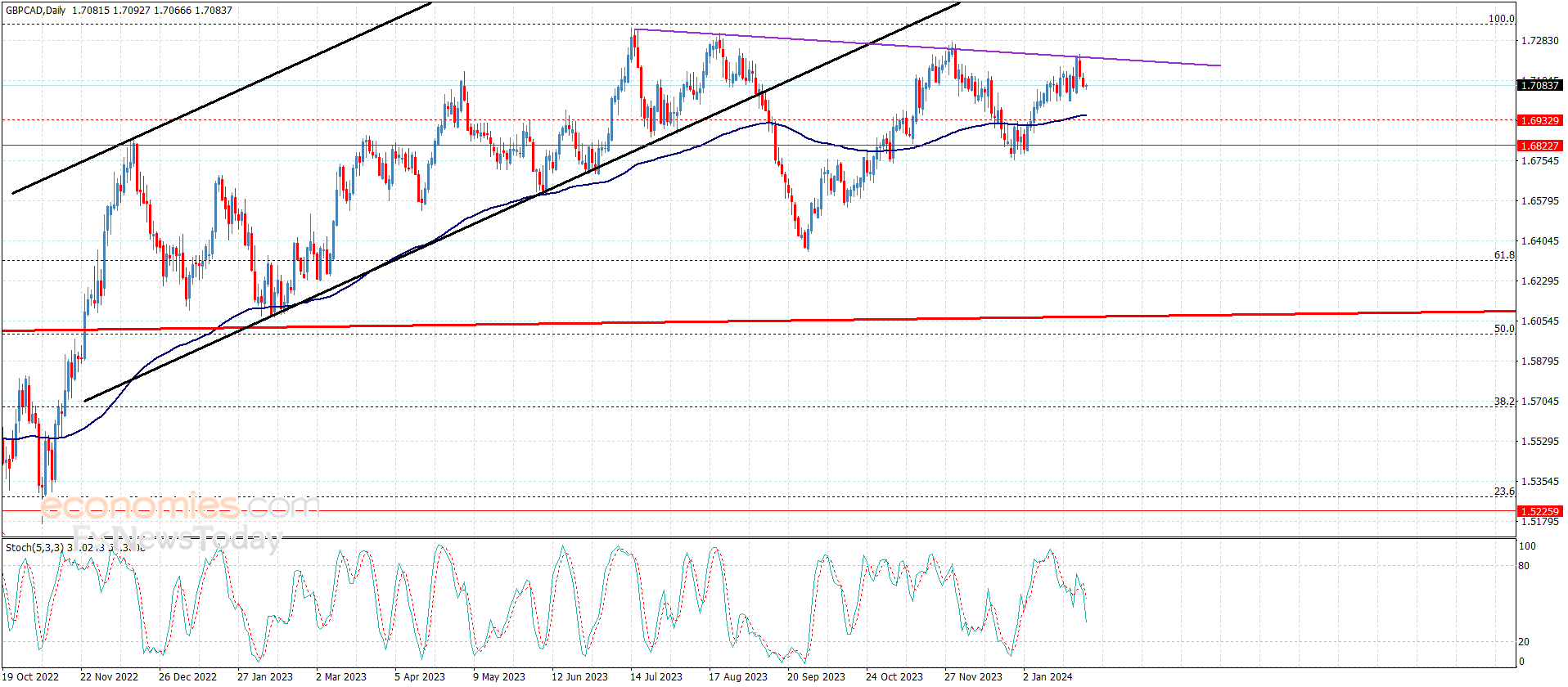 كذلك عودة مؤشر ستوكاستيك للاستقرار ضمن مستوى تشبع البيع سيزيد بدوره من الضغوط السلبية على تداولات السعر ليؤكد استعداده لاستهداف محطات سلبية جديدة قد تمتد قريبا نحو 1.950 وصولا للدعم التاريخي المتمثل بمستوى 1.540.