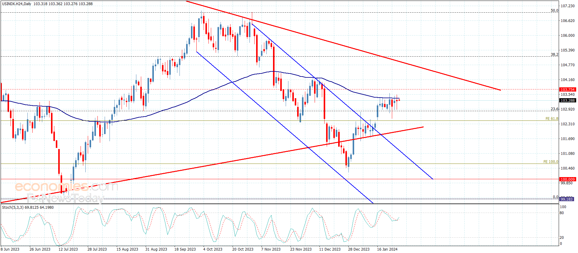 نطاق التداولات المتوقع لهذا اليوم ما بين 103.00 و 103.75