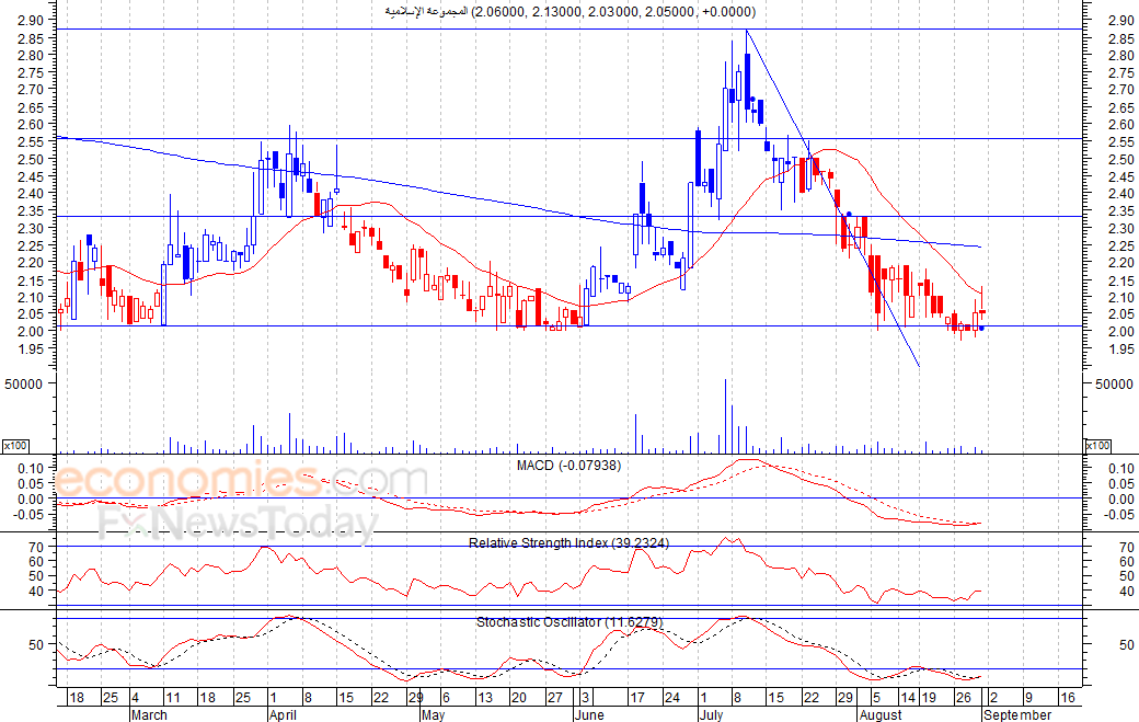 ومن المتوقع ان يكون النطاق السعري خلال جلسة اليوم بين مستوى الدعم هو 2.02 ريال وبين مستوى المقاومة هو 2.15 ريال