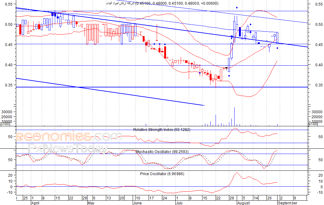 ومن المتوقع ان يكون النطاق السعري خلال جلسة اليوم بين مستوى الدعم وهو 0.47 وبين مستوى المقاومة هو 0.50 درهم