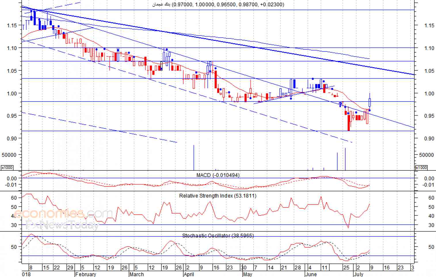 · ومتوقع ان يكون النطاق السعري خلال جلسة اليوم بين مستوى الدعم وهو 0.98 وبين مستوى المقاومة هو 1.02 درهم